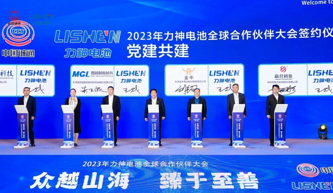 Wang Zhan, on behalf of Lishen Battery signed Party Building and Co-building Agreements with authorized representatives of following suppliers: Ningxia Sinochem Lithium Battery Materials Co., Ltd., Jiangxi Zichen Technology Co., Ltd., Tianjin MGL New Materials, Tianjin Jinniu Power Materials Co., Ltd., Shenzhen Yinghe Technology Co., Ltd., Guangzhou Kinte Industrial Co., Ltd. The signing of the agreement aims to complementary advantages, resource sharing and joint participation through party building and co-building for common development.