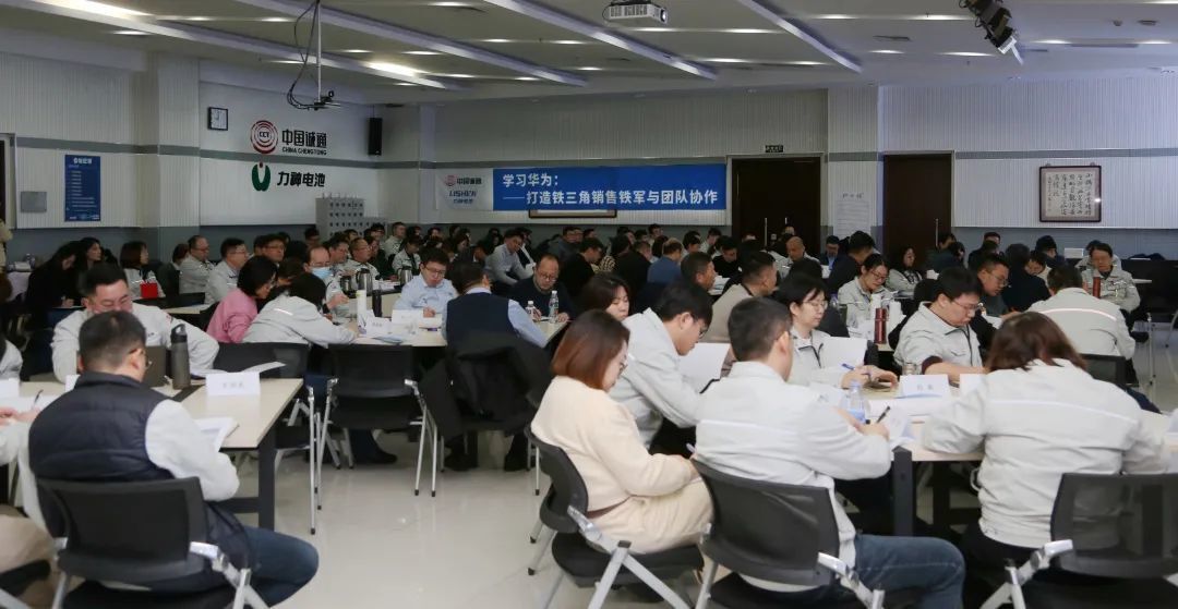 Lishen Battery organized a “Huawei Iron Triangle Role Awareness and Coordinated Operation” training for all members of full-level marketing team for two days, 27-28 January 2024. The training intended to enhance marketing talent team, solidify market and build characteristic brand. Zhang Qiang, deputy secretary of the Party committee and general manager, attended the training kickoff meeting and addressed all trainees.