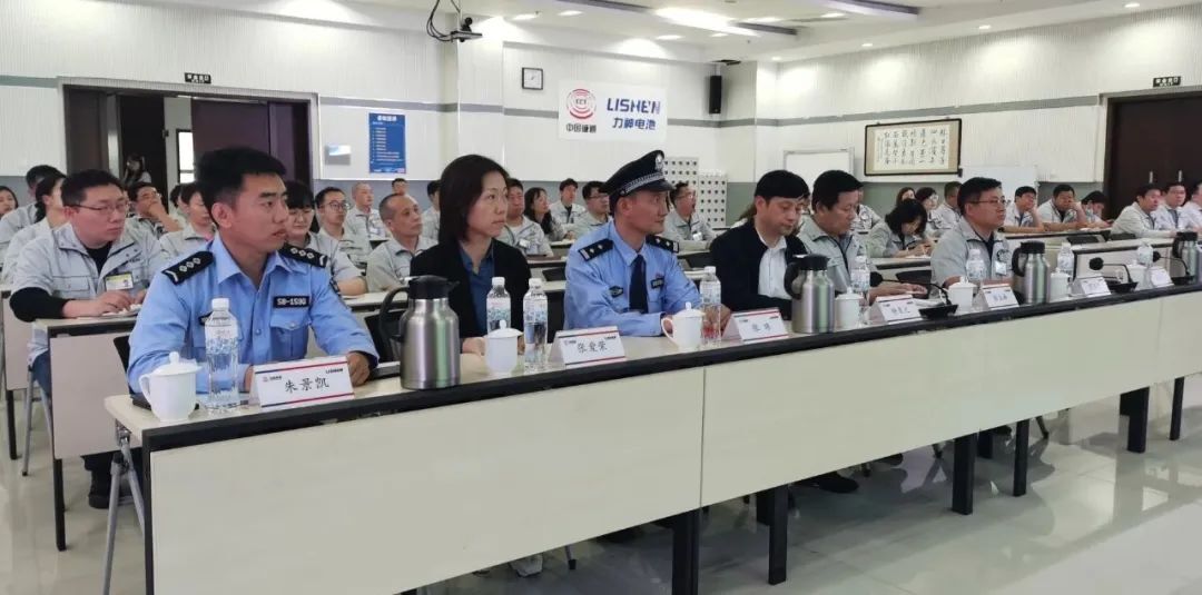 The meeting was held in Lishen Battery on the prevention of telecom cyber scam. Yang Qingyuan, deputy director of the office of the Party Committee of Binhai High-Tech Zone, Zhang Wei, deputy director of the Haitai Police Station of Binhai Hi-Tech Zone, Zou Yufeng, member of the Party Committee and deputy general manager of Lishen Battery, attended the meeting and made speeches.