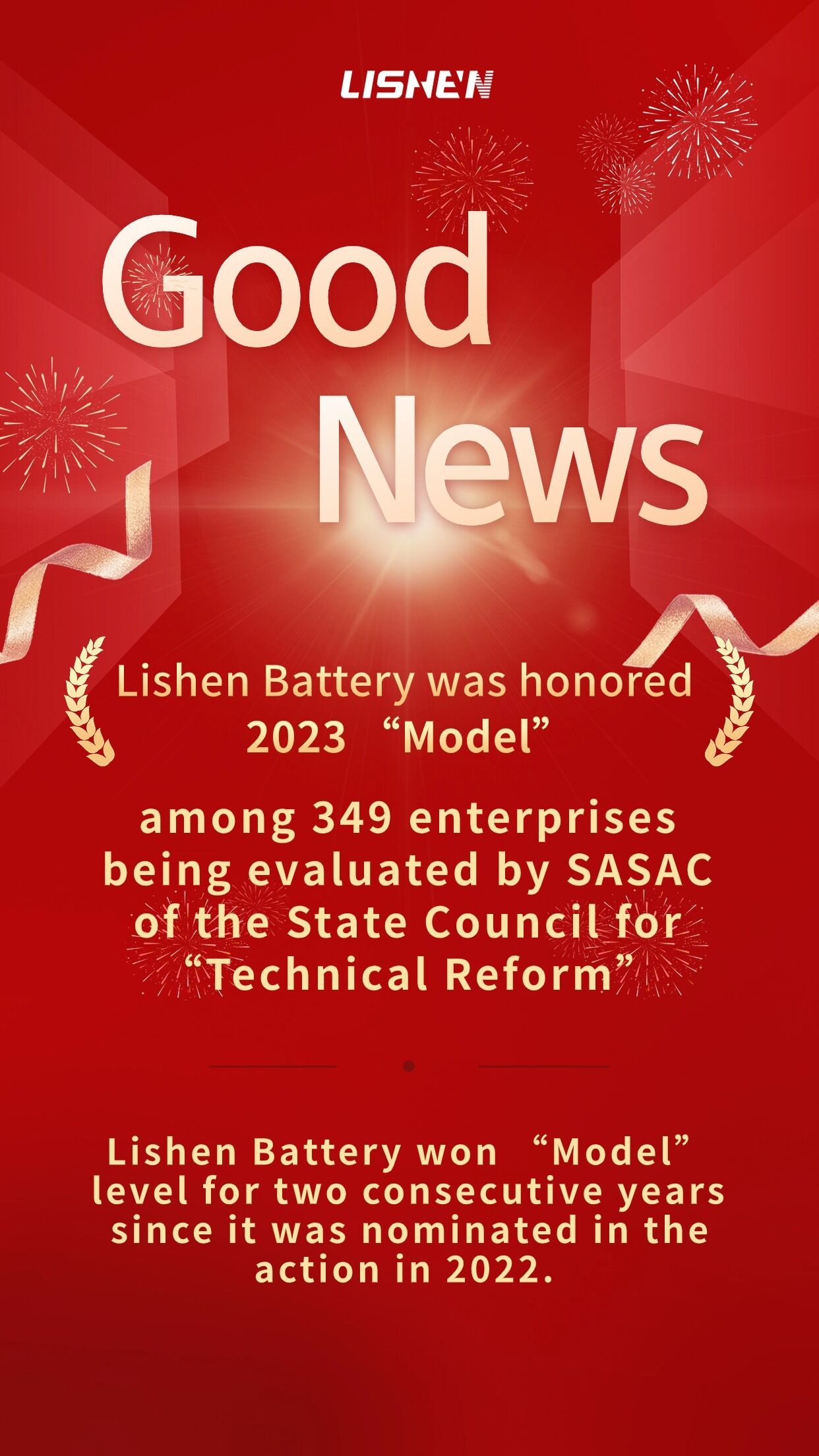 The SASAC of the State Council recently released 2023 special evaluation results of “Technical Reform Action” of state-owned key enterprises. Among 349 enterprises being evaluated this time, Lishen Battery score ranked the top 20%, the best “model” level. Lishen Battery won the honor for two consecutive years since it was nominated in the action in 2022.
